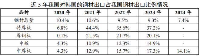 2025年2月20日,韩国产业通商资源部贸易委员会宣布,提议对自中国进口的厚板征收临时反倾销税,税率为27.91%-38.02%不等。不同企业的倾销税率分别为宝钢27.91%、江苏沙钢29.62%、湘潭钢铁、赛诺国际和厦门国贸控股38.02%,其他在华供应商31.69%。
